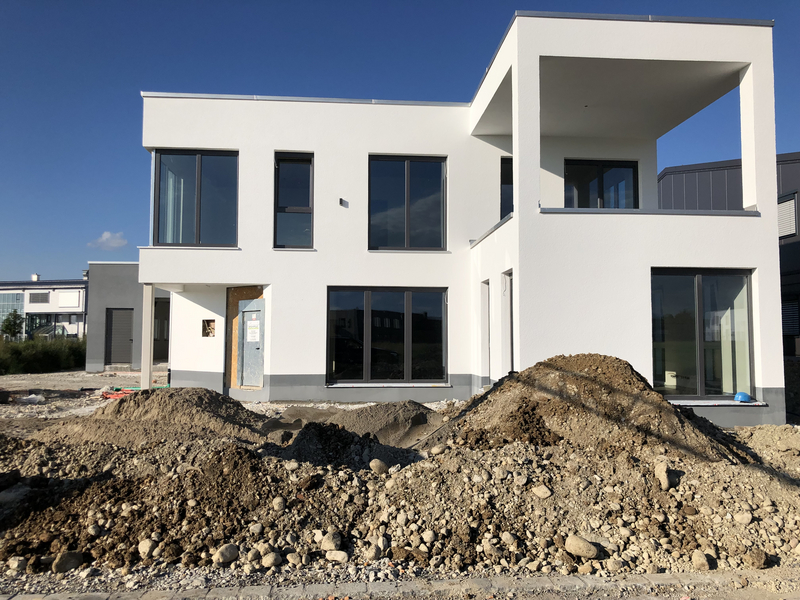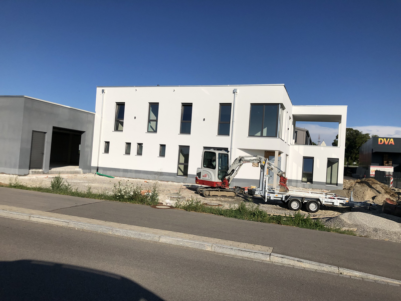 Schon wieder ist ein weiterer Monat auf unserer Baustelle vergangen. Inzwischen ist das Gebäude innen, sowie außen verputzt, die Fußbodenheizung ist installiert und die Malerarbeiten außen sind abgeschlossen. Anfang dieser Woche kam der Estrich in das Bürogebäude, wodurch die arbeiten nun erst einmal für mind. 4 Wochen ruhen.