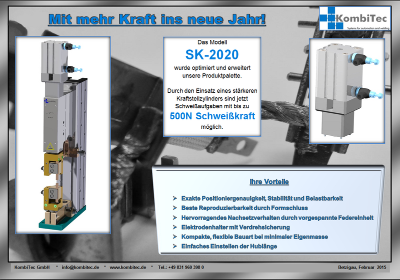 Durch den Einsatz eines stärkeren Kraftstellzylinders sind jetzt Schweißaufgaben mit einer Schweißkraft mit bis zu 500N möglich.